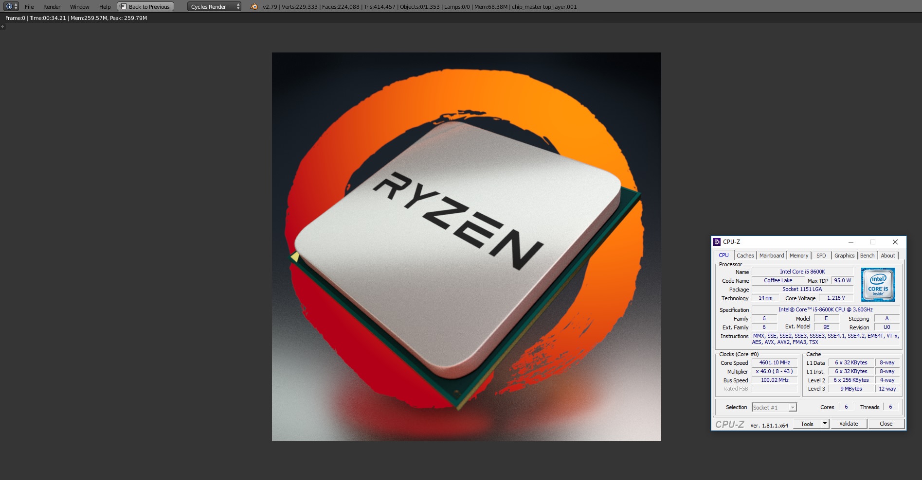 EDIT: U međuvremenu, evo malo rezultata s mobilnih procesora, oba, naravno, na stock frekvenciji i spojeni na punjacu: i7 6700HQ (SkyLake) - 58.04 (HP Pavillion laptop) ![]() i7 3623QM (IvyBridge) - 1:23.22 (HP ProBook 470 G0 laptop) ![]()