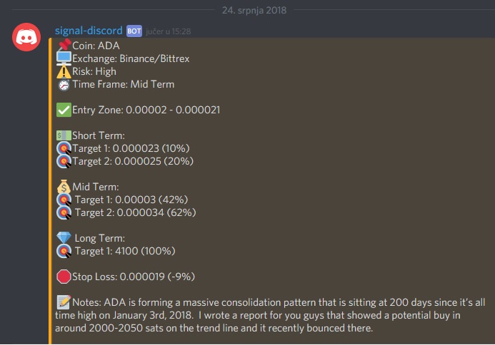 Ja sam sada kod zadnjeg raspada sistema izašao iz svega osim ADA. Sve što sam imao sada je u tu. Na ICX-u sam popušio najviše, ali dopizdilo mi neprestani i uporan pad. ADA barem pomalo raste, a dugoročno je, potvrđeno iz više izvora, obečavajuća. Pa živi bili pa vidjeli ![]() Zadnja potvrda od jučer sa pay discord kanala Zadnje izmijenjeno od: Dambo. 25.07.2018. u 16:39. |