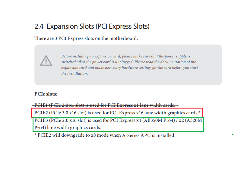 Kolega mi je dao matičnu ASRock AB350M Pro4. Grafička ima jedan PCIe 3.0 x16 (na matičnoj ploči označen kao PCIE2) i jedan PCIe 2.0 x16 (na matičnoj ploči označen kao PCIE3), stvar je u tome što je kolega slomio PCIe 3.0 x16, tako da mi preostaje grafu (RX 570 4gb) ubosti jedino u PCIe 2.0 x16. U manualu (označeno zelenom bojom) se spominje nešto kao da će mi raditi x4 brzinom umjesto x16 (ako sam dobro skužio uopće). Pitanje je hoće li raditi x4 brzinom ili x16 brzinom? I još me zanima hoće li biti puno lošiji FPS u igrama pa da bolje kupim novu matičnu ili to nema neke pretjerane veze? Planiram na to staviti nešto između ryzena 1600 i 2600 (ili jednog od ta dva, još ne znam, ovisi na šta naletim ako netko od kolega s foruma bude prodavao). |