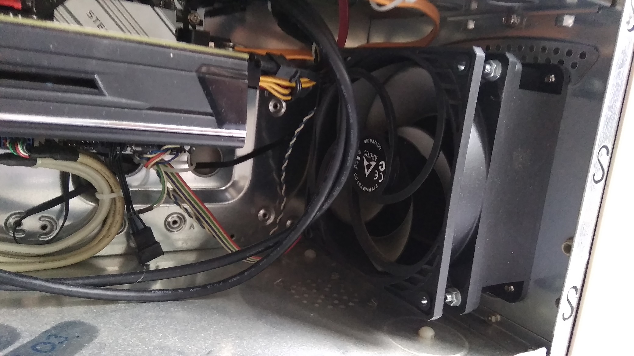 OK, prvo malo o kućištu i protoku zraka. I jedno i drugo je daleko od optimalnog (vidi slike). Aidu nisam probao, Prime sa ovim hladnjakom (koji btw nije ni blizu hiend Noctue ili nekog vodenog) se nakon 5 min zabije na 75°, pa nakon 45 min se popne na 90°. Kanta stoji pod stolom pa se pri tome skoro pa uopće ne čuje. A ionako je prime opterećenje kojim se osobno ne bavim. Blender npr. nikad ne ide preko 80°. Gaming (NFS, samo to igram) 70°. Možda bi mogao ići još niže sa voltažama, no nemam živaca još više petljati po tome. Štoviše, mislim da ću sve vratiti na default. Za moje potrebe je i to overkill.