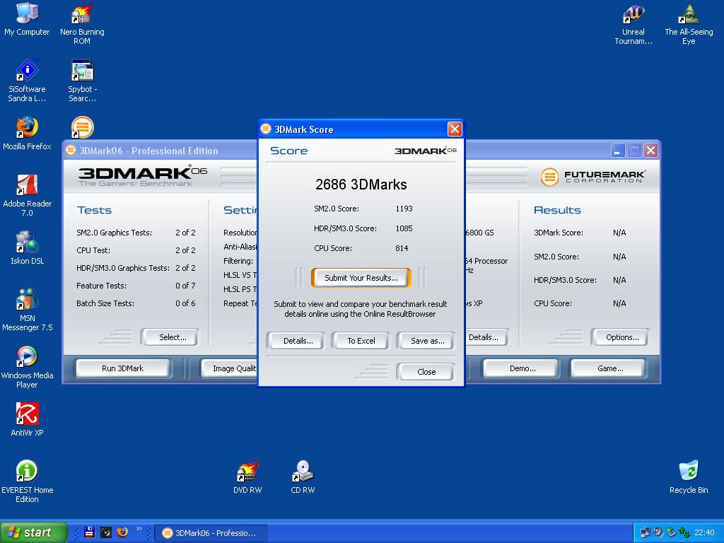 Naaaajs.... SM 2.0: kod mene 2881 vs tvojih 2539 HDR/SM 3.0: kod mene 2724 vs tvojih 2628 CPU score: kod mene 958 vs tvojih 1165 BTW: koliko ti baca pri 1280*1024? |