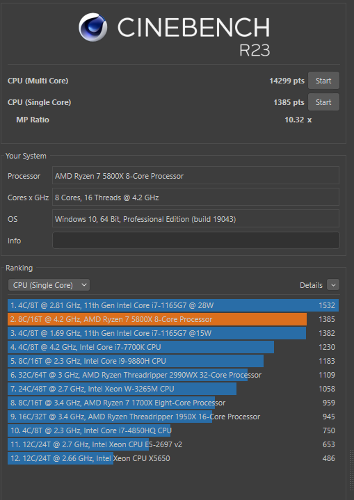 Evo konacno uhvatio vremena i nabrzaka slozio komp. Namjera je, obzirom na slabo hladenje (zalman cnps10x optima 2), proc (5800x) drzati na stock taktovima jer je prioritet stabilnost zbog posla. Tristo do petsto mhz ekstra sto bi mozda dobio 80 puta vecom zajebancijom mi nije bitno. Prvo sam pokusao u biosu PBO postavit na vrijednosti 105/80/90, ali se u idleu znao srusit, dozivio sam par BSOD-ova, proc se nije pregrijavao ali je isao do kakvih 75-6 'C. To je bilo jucer. Danas sam odlucio iskljuciti PBO u biosu i postaviti fiksnu frekvenciju na 4.2 GHz i manual voltage na 1.13V (to sam negdje procitao da je najsigurniji napon po pitanju degradacije procesora jer to zelim izbjeci). Izvrtio sam Cinebench R23 stress test (30 min multi) i najvisa temp je bila 67'C s cim sam zadovoljan. Zatim sam izvrtio jos 10 minutni multi i single i sve je proslo ok. Komp u radu najnormalnije radi i to mi je najbitnije. Molim vas sa malo duzim stazom na 5xxx seriji da mi velite jel to ok frekvencija za taj napon ![]() Sad dok ovo tipkam temp proca je 32'C. Skoci do 50 ako otvorim jos koji program. Evo i koji screenshot Zadnje izmijenjeno od: Cuky. 08.06.2021. u 14:39. |