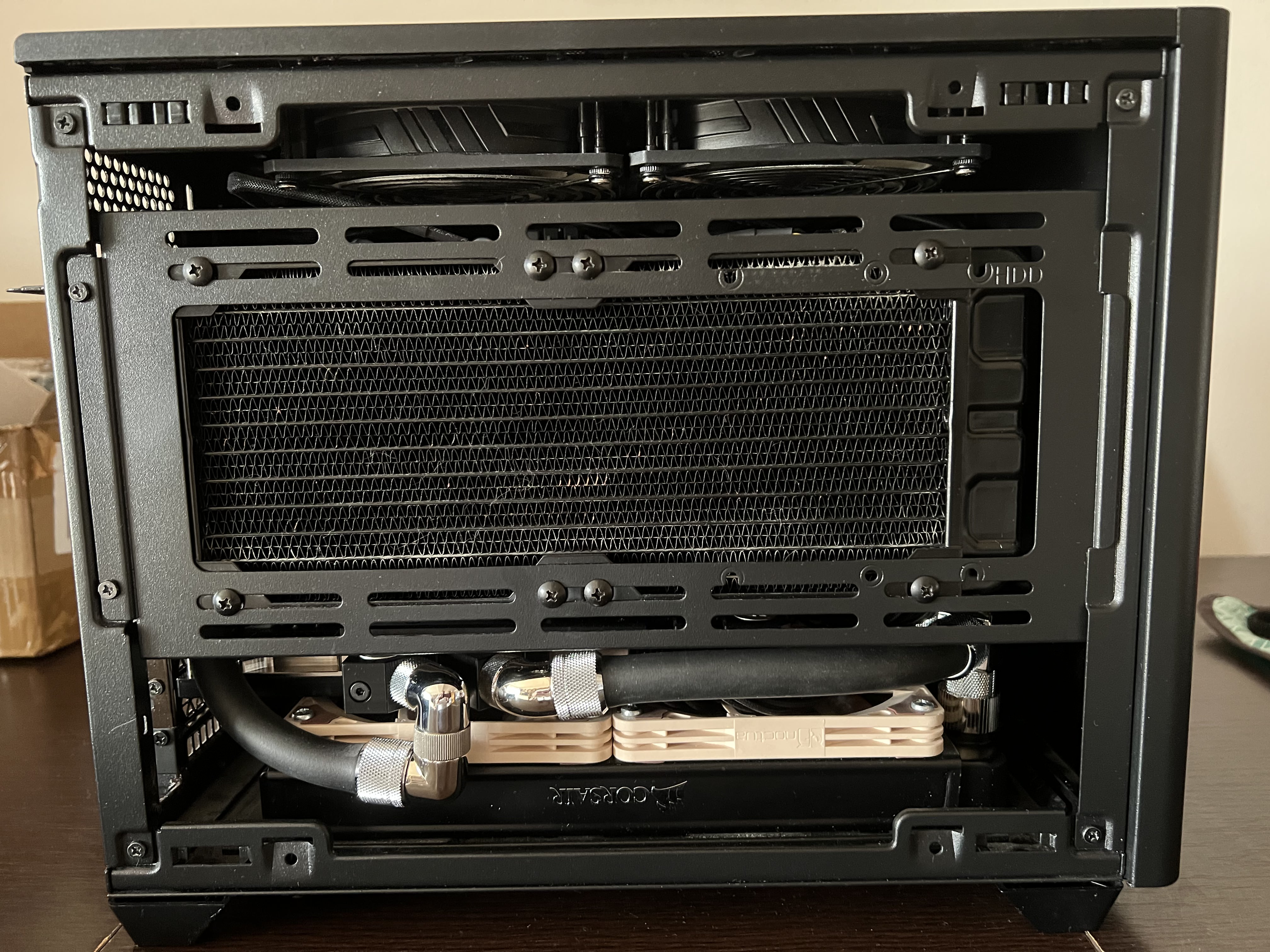 Godinu dana kasnije, napokon sam nešto i napravio (vidi zadnji post na prethodnoj strani). Nisam ni sam siguran kako sam ovo sve zgurao unutra ali funkcionira i što je najbitnije - drži vodu ![]() ![]() ![]() ![]() Temperature : CPU nakon 10min Cinebencha multi core - 75C prosjek, u početku testa ga zakuca u 81C, nakon toga se vrti između 73C i 77C GPU u Superpositionu na 1080p Extreme testu max 50C Buka u loadu - solidna Moram poraditi na krivuljama, plus vidjeti koje su mi alternative za ventilatore; ove u podu što hlade 240mm radijator ću lako zamijeniti (InWin Sirius originali od kućišta, OK specifikacije ali ništa za hvaliti se) ali ovaj u krovu i iza 120mm radijatora teško, jer su zbog malo mjesta namjerno 15mm debeli modeli (Noctua, mislim da tu nemam bolje opcije). |