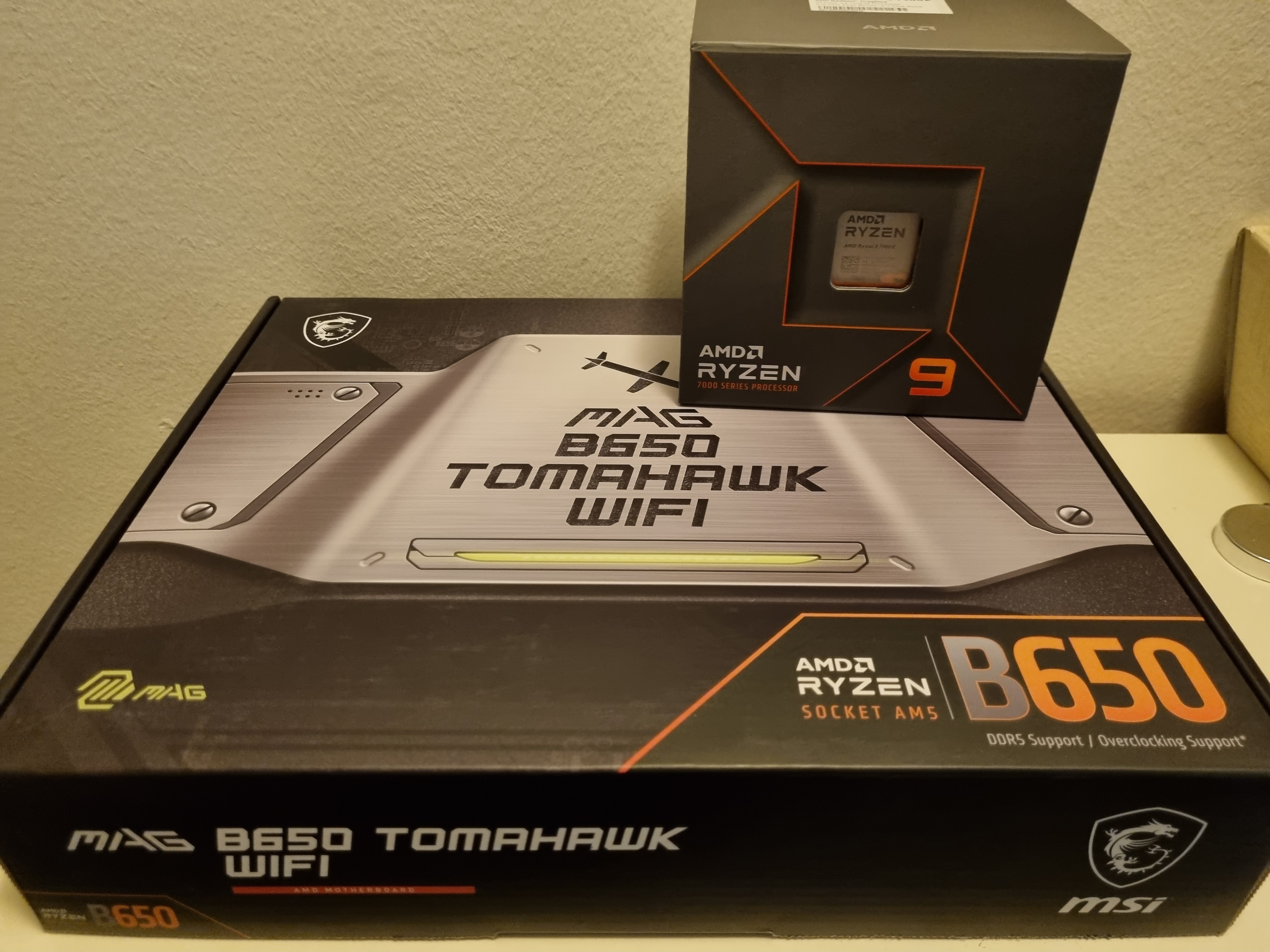 AMD Ryzen 9 9950X | Noctua NH-U12A chromax.black | MSI MAG B650 Tomahawk Wi-Fi | 128GB Kingston FURY Beast DDR5-5200 | 256GB AData SX8200 Pro NVMe | 2x4TB WD Red Plus | Fractal Define 7 Compact | Seasonic GX-750 AMD Ryzen 5 7600 | Noctua NH-U12A chromax.black | MSI MAG B650 Tomahawk Wi-Fi | 128GB Kingston FURY Beast DDR5-5200 | 256GB AData SX8200 Pro NVMe | 2x12TB WD Red Plus | Fractal Define 7 Compact | eVGA 650 B5 AMD Ryzen 5 7600 | Scythe Kotetsu SCKTT-1000 | MSI MAG B650 Tomahawk Wi-Fi | 64GB Kingston FURY Beast DDR5-5200 | 256GB AData SX8200 Pro NVMe | 2x14TB WD Red Pro | Fractal Define 7 Compact | Seasonic SSR-550PX |