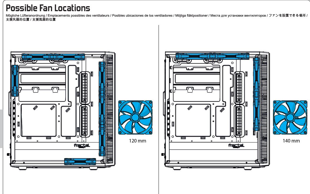 ![]() @nino, gledao sam taj tanki jedino zato što on fizički može stati unutar kućišta pored GPU, klasični ventilatori su 25mm i jednostavno ne stanu. Šta je moguće da je ovaj tanki toliko loš? Koliko sam gledao po YouTube čine se ok i nisam našao nigdje da piše da su baš smeće. Iznutra sa prednje strane jedino mogu staviti 2x120x25mm i jedan tanki 120x15 ili ići eventualno na 2x140x25 ali to moram provjeriti da li bi stali zbog veličine grafičke. Gore stanu 2x140x25mm, dolje na samom dnu kućišta 1x120x255 i straga 1x120x25. To je ono što kućište dopušta. U prilogu specifikacije kućišta. A vizualni prikaz montaže fanova je u postu prije. Ne bi mijenjao ove što su došli sa kućištem jer su dosta tihi, radije bih kupio koji extra. Kupiti 4,5 novih fanova mi se čini preveliki trošak. Ne znam jesam li u krivu, pošto @zika21 tvrdi da su ovi fractalovi smeće. Ja sam osobno mislio da bi najbolje bilo 1 tanki 120 pored GPU, jedan 120 normalni ispod GPU i jedan 140 gore na vrh. |