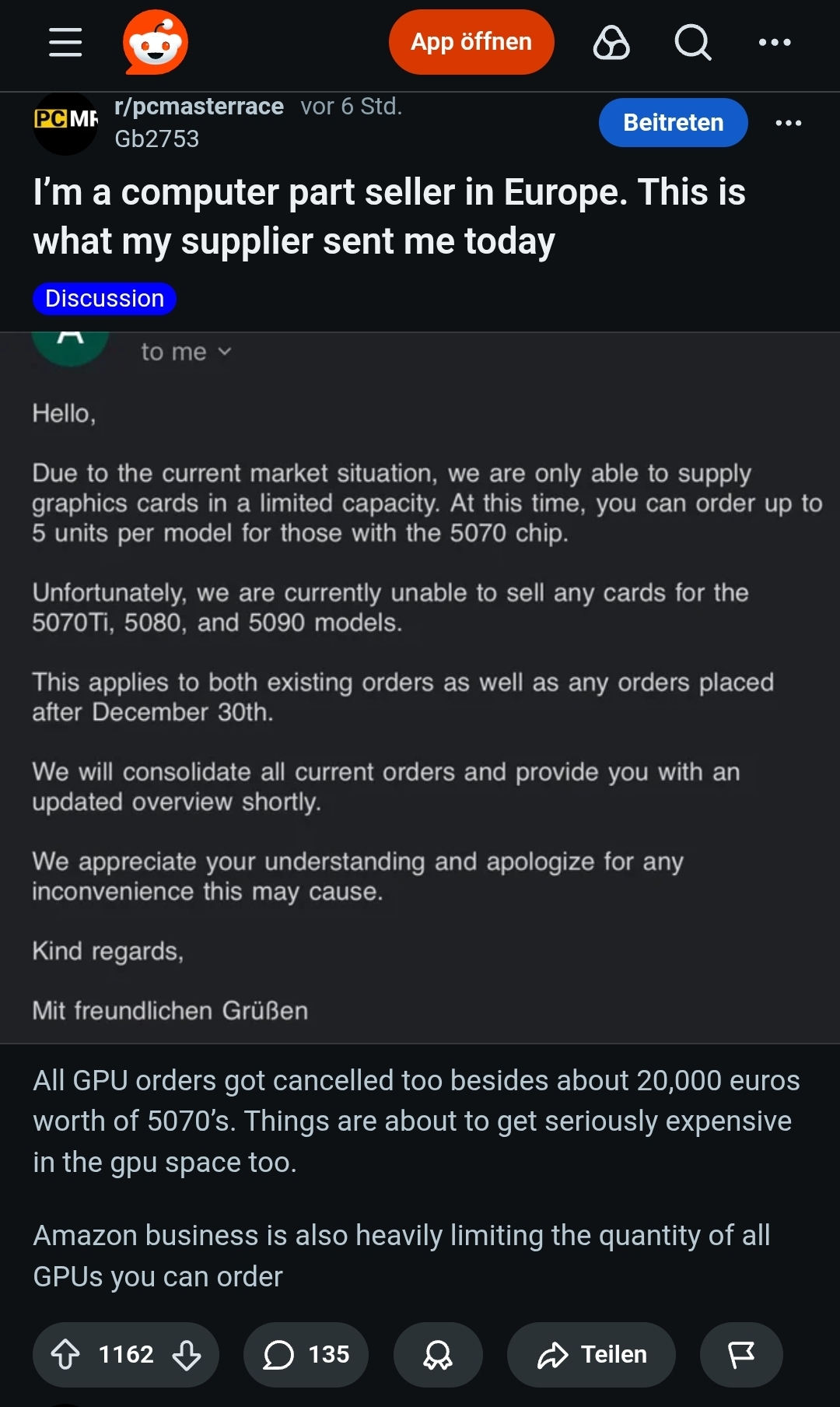 Zaokružio priču, kako je krenulo (RAM, SSD, GPU ima li kraja ???) bolje da sad uznem pa sam miran. Gledao / premišljao vec 2 tjedna, uzeo na novu u cetvrtak. Gledao na amazonu za prijatelja ASUS Prime Radeon RX 9070 XT OC za 650E, 2-3 dana, pogledam danas rasprodano. ![]()