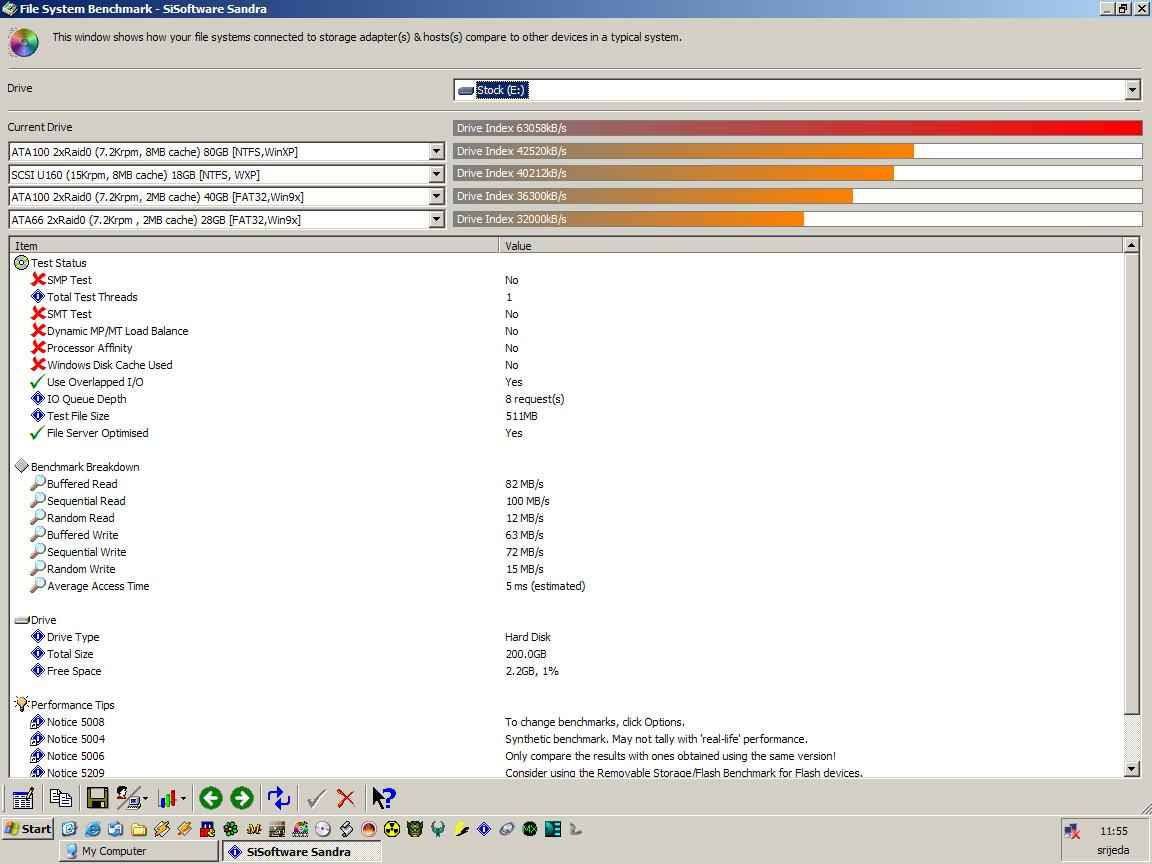 I prilažem Vam screenshot iz Sandre... znam, nije pravi benchmark, ali savršeno služi za usporedbu sa ostalim sistemima.