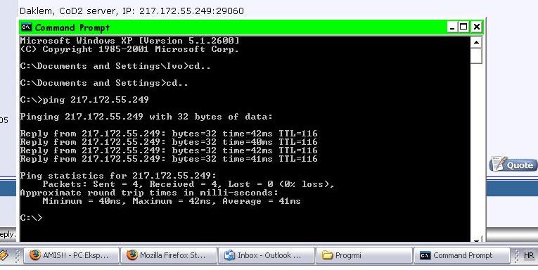 Na poslu T-Com i ping mi nikada nije iznad 35. Kada uđem u igru 50. Za to su oni koji igraju na Amisu uglavnom jako zadovoljni. Nije ništa posebno dobar ili loš, ali je posebno jeftiniji taj paket sa telefonom. |