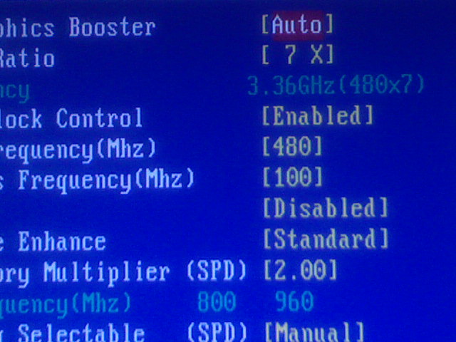 Neda mi se preko windowsa prčkat po sistemu. Ako OC onda u biosu. Dao sam ramu 2.3 Proc još uvijek na 1.35 Zasad 15 minuta stabilno na 490. Ak bude 1sat stabilan idem na 500. Mislim da mi na memoriju ništ netreba puhat. Zalman CNPS9700 je na procu i on lagano puše/vuče zrak od memorije. Vidjet ću kolko bude vruča možda čak stavim jedan vent pred memoriju tek tolko na 5V da ima vjetra EDIT: 490 nije išlo. Evo moje postavke sa 480(možda neko ima istu ploču,proc,ram) Slike su slikane mobom pa malo loša kvaliteta al vidi se sve. Na 480 je stabilan i nimalo vruć(proc 48° a ram s rukom osjetio samo lagano topao) Zadnje izmijenjeno od: Runlevel5. 11.02.2008. u 12:55. |