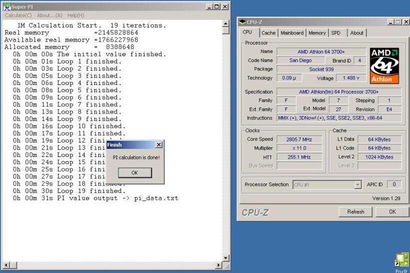 hehehe inače taj screenshot je napravljen nakon drugog ulaska u OS od instalacije novog proca ![]() dovoljno je stabilno na SuperPi 1M (i više) ,ali prime baca grešku nakon par minuta...tako da ona voltaža iz CPU-Z nije dovoljna za taj takt inače postavke su bile 255x11 , 4x HTT, 5:4 divider...tako da je memorija bila na 400MHz i naravno 2T (1T = nemoguća misija )to je dovoljno za 5.5k read u everestu što nije loše za 2T i 2.5-4-4-8@400 Max OC će pričekati da se proc malo burnin-a i neku malo hladniju noć ,ali uspio sam naći sweet spot koji će vjerojatno biti za 24/7 >>250x10 @ default vcore (testirano sa Prime95,OCCT i S&M) |
