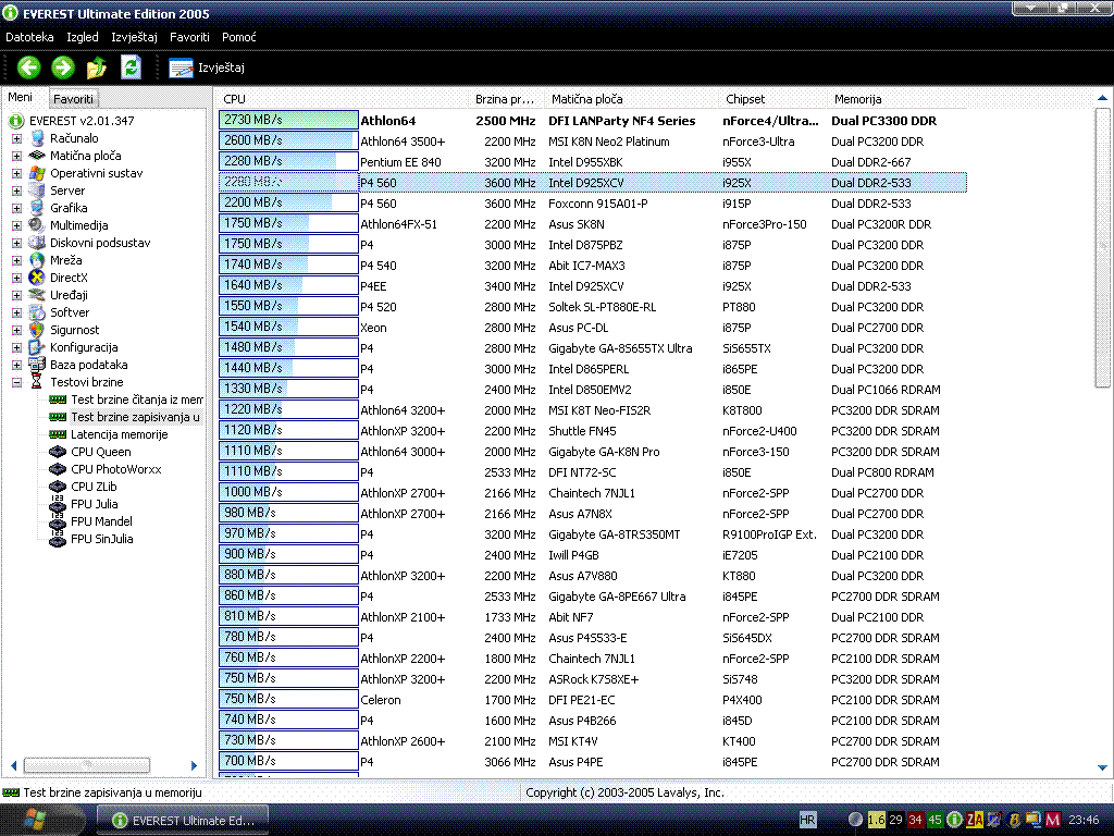 Ovo je strašna ploča.Mjenjajući postavke po ovome http://secure.ncix.com/forumpost/dis...hreadid=859944 i ovome http://www.dfi-street.com/forum/showthread.php?t=11397 ubrzao sam memoriju ne podižući uopće FSB.Malo tweakanja i leti.3dmark2001se sa 15599 na 16045,sandra na 94% i 93% efficiency.Everest write +300mb/s.Nije mi stabilna na visokom fsb 1:1 ali zato leti na niskim latencijama a blizu deklarirane frekvencije 200@208mhz DDR |