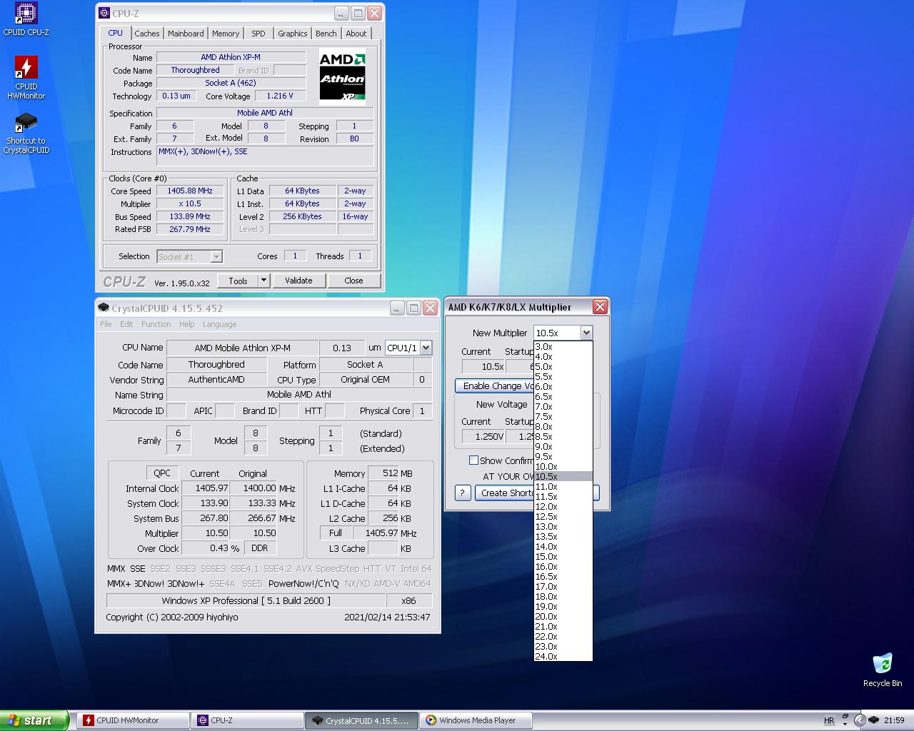 Nije mi vrag dao mira. Stavio sam XP privremeno da provjerim HW i drivere. Geode radi savršeno. Multi se mijenja on-the-fly s CrystalCPUID-om, što daje dosta fleksibilnosti. Interval je x6-10.5. Pored toga postoji mogućnost manipuliranja FSB-a u BIOS-u, plus isključivanje L2 cache-a. Tako da sam pokriven od 400-1400Mhz. Zadnje izmijenjeno od: stef. 15.02.2021. u 00:02. |