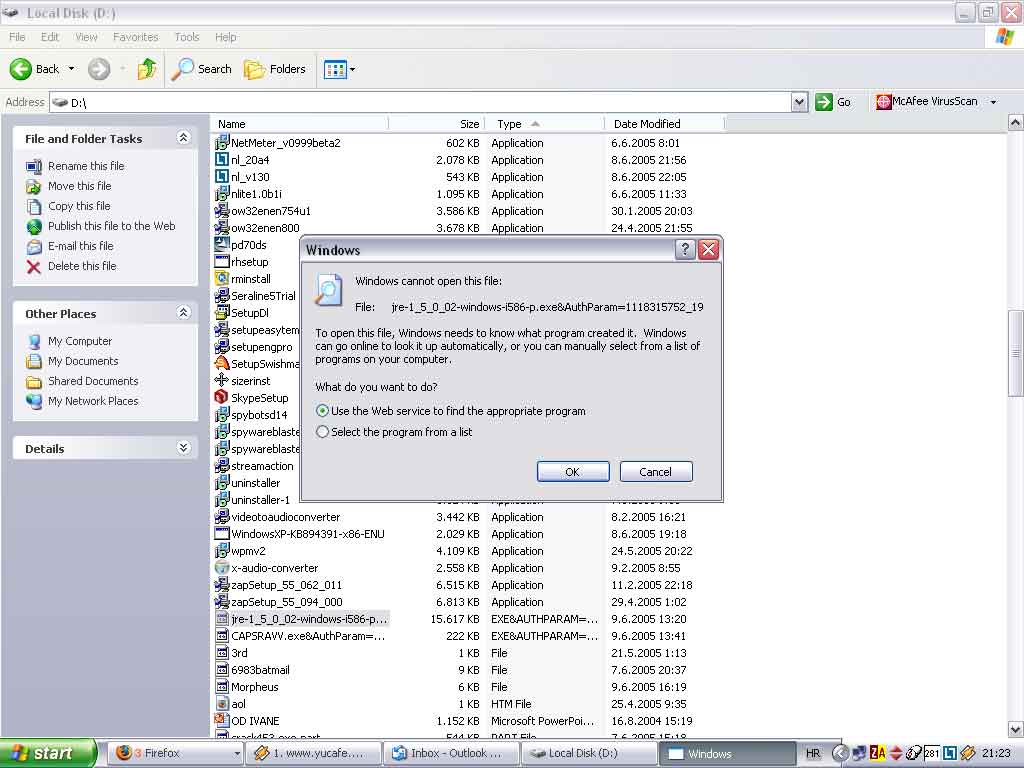 Danas sam deinstalirao Java runtime enviroment da bih instalirao novu verziju,sasvim nepotrebno al j....a sad je kasno.I više ne mogu instalirati novu.Ni u IE6 ni u Firefoxu.Ispod je slika koja prikazuje što napiše.Hvala unaprijed!