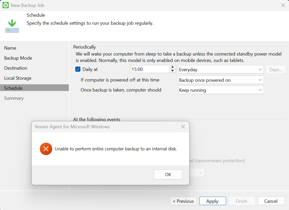 Nažalost, Veeam ne podržava izradu backupa na interni disk, samo eksterni. Šteta, jer imam interni disk namijenjen upravo i samo za to :/ A baš sam se ponadao da neću više morati plaćati godišnju pretplatu na Macrium... |