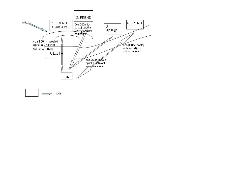 po ovoj slici i po objasnjemima s nje najbolje bi bilo kod tebe stavi AP na kojeg ce se svi ostali spajat bezicno dok se ti na njega spojas kabelom,kod frenda gdje je ADSL stavi se router i eto ga,sad je samo pitanje koliko bi mogli izdvojit za hardware,antene i kablazu.
