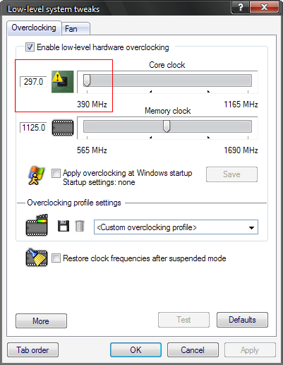 Za sad sam klokao samo sa Overdriveom i rezultat je sljedeći, GPU 840, mema 1306MHz (x2). Budem stavio Rivu pa da vidim šta ona kaže. Taman misliš kak mrziš Ati i onda te ugodno razveseli