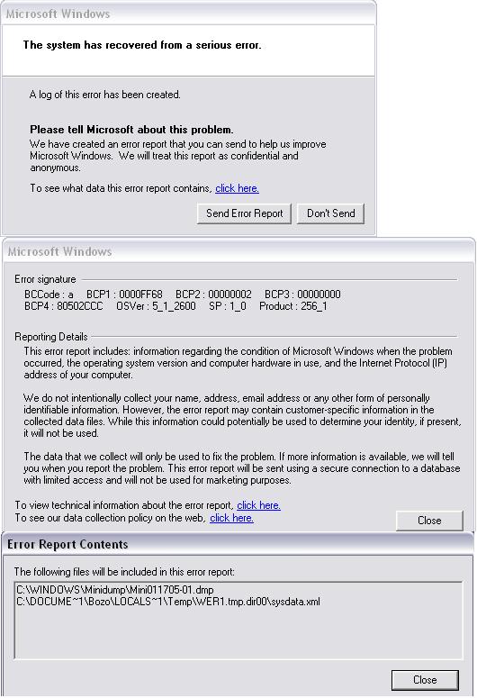 U kratko, usred rada windowsi su se srušili sami od sebe, nema upozorenja o gašenju, sejvanju samo mukli zvuk prestanka vrtnje diska....... Nakon ponovnog podizanja ispisao je poruku o nekakvom erroru - prilažem error Ovo se sad dogodilo dok ništa važnog nisam radio no neću niti pomišljeti kaj ću mu napraviti kad će biti nešto važno..... jednostavno HEEEEELP