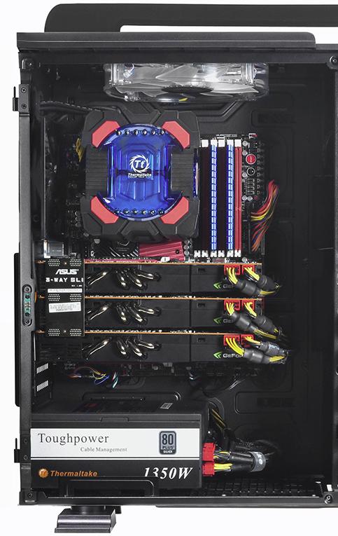 "[Level 10 GT] is a revision of the [Level 10] that is meant to be more affordable ($269 MSRP), but still keep the same styling as the original Level 10. This case has a ton of great features. The first is that there are 5 internal hot-swappable bays, each of these bays can fit 3.5-inch or 2.5-inch drives. These bays are easily removed by pressing in a button on the side and sliding them out. This case is designed to be a gaming case so there is a pull out headphone holder, which is perfect for LAN parties." Commented Bob Buskirk, owner of Thinkcomputers.org.