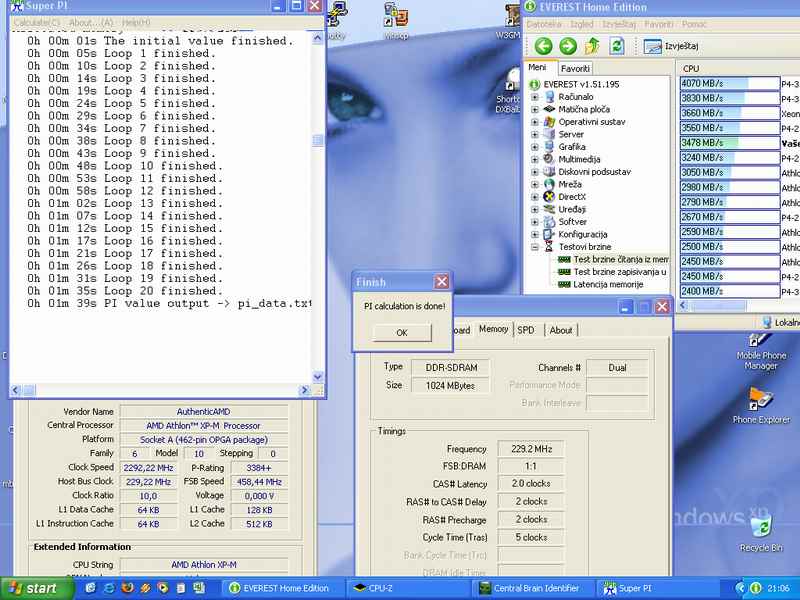 Ovo je s malo klokanja iz windowsa.. naravno da nije stabilno Isto 2.9Vna 225 radi s 2.8.. prime 24 h stabile. s cpc enabled 2-2-2-5 ide na 420 MHz