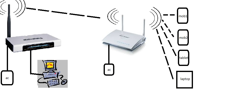 znaci zanima me dali je ovo moguce... imam internet od kolege koji je u drugoj zgradi... taj signal koji primam sa laptopom mi jako slab, sa mobitelom ni ne hvatam... znaci zanima me dali bih mogao kupit nesto router ili AP koji bi samo spojio u struju i konfigurirao da prima njegov signal i pojacava da imam u svom sgtanu da mogu spojit mob tablet laptop? znaci treba,m uredaj da ga konfiguriram sta da radi i da dalje radi samo u struji... znaci da nemora biti spojen na laptop ili kompjuter |