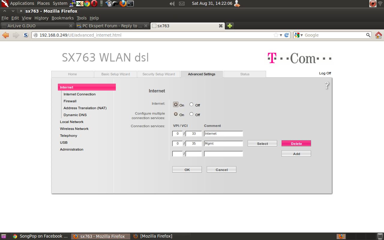 Inace, usporedjivat sx760 i ADB A42002 moze samo laik, neznalica ili provokator, jer je sx760 sa T-Com firmware-om po mogucnostima neusporediv. Postaje usporediv tek kad se promjeni firmware sa OpenWRT verzijom, jer se ADB vozi na prilagodjenoj verziji OpenWRT (Kamikaze) koja je space shuttle za ovaj T-comov ![]() |