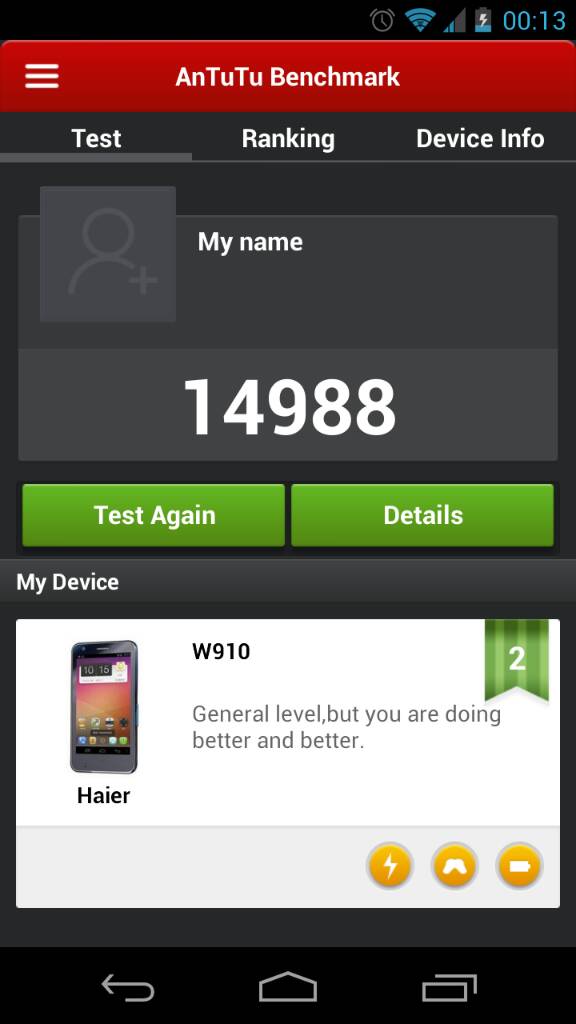 Evo par slika iz AnTuTua. Slabiji rezultat je nakon sat korištenja, a bolji nakon restarta. Rom je 4.1.2 kojeg je kojega necromicon stavio u prvom postu. Kasno je za testirati pozive pa cu to sutra, s baterijom i gps-om. Ako netko ima .apk starije verzije antutua nek se javi, ova nije bas nesto