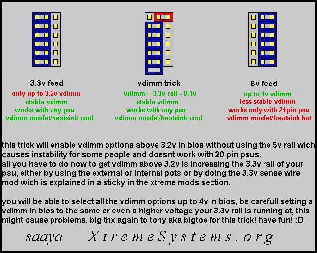 Taj 3.3v trik kod mene ne vrijedi,premjestio sam jumper na 2-3 poziciju (expand dram voltage up to 4v) i stavio 3.3v a sada i 3.4v dok testiram i digao sinhrono s fsb 250 x 10 memoriju.