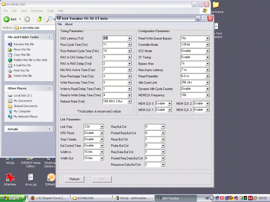 Ili postaj slikicu od A64 Tweaker-a da vidimo kakve su ti postavke meme.