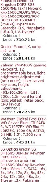computeruniverse.net - moglo se to jos jeftinije, ali sam isao na bolje komponente... ![]() sa dostavom na tvoju kucnu adresu = 1360€ x 7,6kn = 10,336kn |