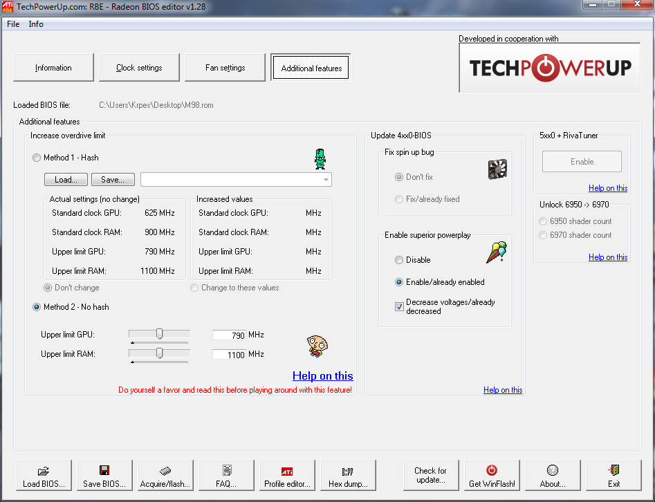 možeš i vidjeti postavke drugih GPU BIOS sličnih kartica ovdje , ali nemoj njih upucavati , bolje je da prepraviš svoj