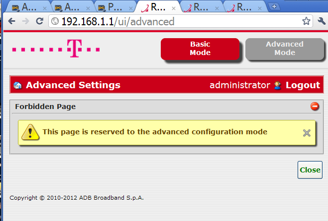 Za skoro sve druge adrese preusmjerava me na http://192.168.1.1/ui/advanced i piše "Advanced Settings - Forbidden Page - This page is reserved to the advanced configuration mode".
