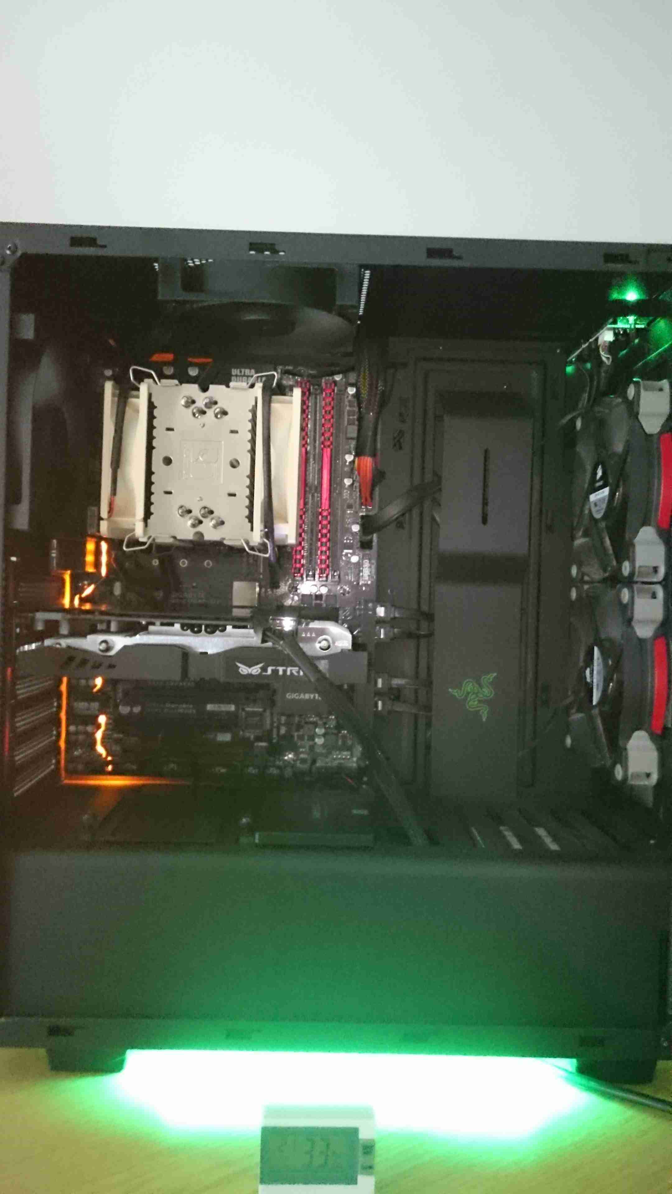 Evo maloprije sam dignuo proc na 4.4GHz @ 1.3v (bio je na 4.2GHz @ 1.28v). IntelBurn Test 20 pasova na Extreme nije išao preko 72 stupnja, iako sam i ja detaljno pratio preko MSI Afterburnera i nije mi otišao preko 70 u full loadu. Inače u idleu je oko 26. Bilo bi to i manje ali sam prednji vent, CM Jetflo s kojim nisam nikako zadovoljan, morao staviti na silent preko UEFI-a jer je preglasan. Hladi odlično ali mi je buka, a na silent je dovoljno dobar. Maknuo sam vent na vrhu kućišta pa sad ispred imam jedan CM Silencio SP, već spomenuti CM Jetflo i iza NZXT koji je došao s kućištem, na procu je Mugen MAX. Sve u svemu zadovoljan, išlo bi to na 4.8GHz sigurno sa igranjem voltaža ali ne želim. |