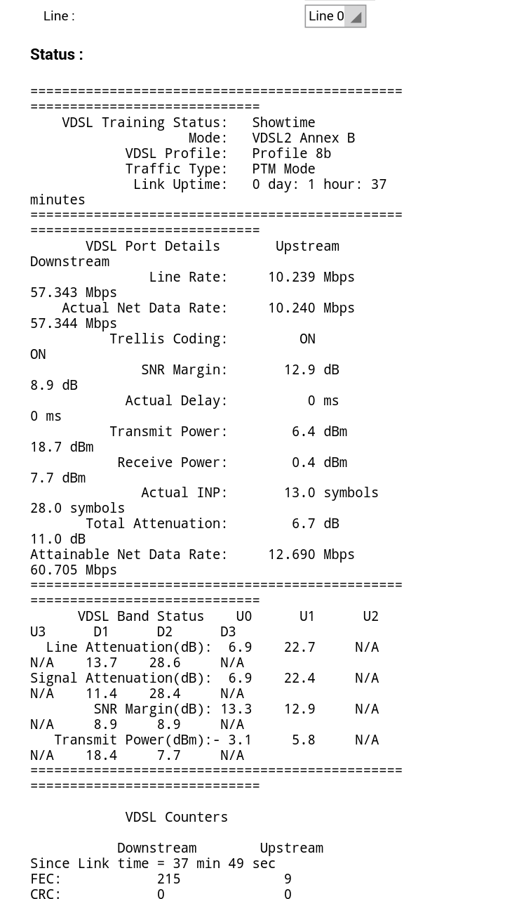 Tebi nešto ne valja s paricom. Po atenuaciji si nekih 600m od centrale a max ti je 12Mbps na adsl-u i imaš tako malu marginu. Na vdsl-u bi mogao imati do 50/10mbps ali zbog ove čudne stvari prije 20/5