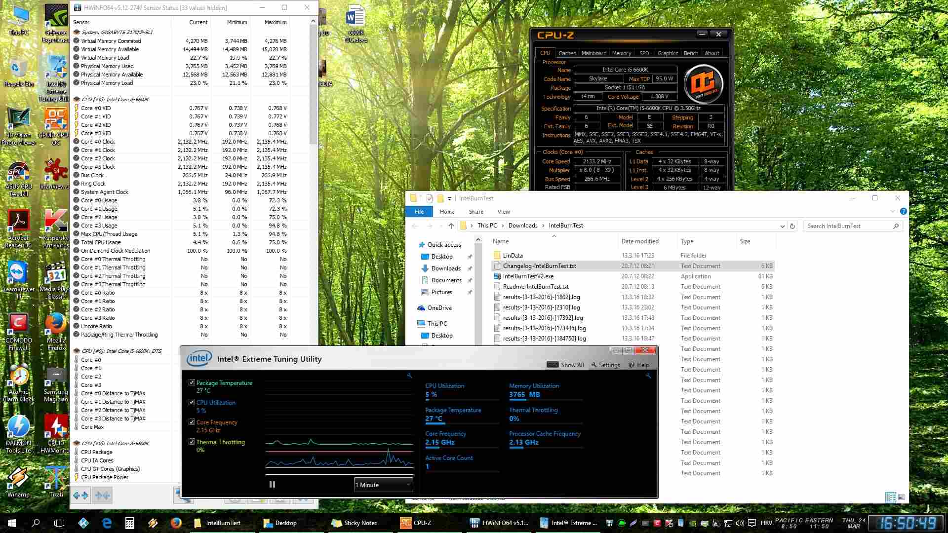 E sad da vas zasipam sa informacijama uvezi 6600K. Dani lete ko ludi a nikako da zapisem neke dojmove odma na forum kak sam testirao a eto potrajalo je 2tj i jos mi je ostao OC memorije sljedecih par dana, al to je najlaksi dio.. Pa da pocnem. Gigabyte je izbacio zadnji official UEFI(bios) nakon 3 i pol mjeseca(ver. F6) za moju plocu i moram priznati ispravili su velke musice koje su se dogadjale ko npr kad restartam komp ploca se izblesira i ode u bootloop(jedino clearcmos pomaze, kad udjem natrag u bios nemam sejvanih profila, a tek kad jos jednom restartam bios oni se natrag pojave nekim cudom). Ili npr odem u bios, nis ne promjenim, odaberem exit without saving changes, enter, i ploca opet ode u bootloop. Pa eto ispravili su to sve i konacno sam mogao sa puno manje zivciranja isprobavati sve zive settingse koje mi ploca ima za ponudit. Prvo sam se bacio na clockanje BCKL-a. Trebalo mi je tjedan dana istrazivanja po forumima da skuzim zasto nemogu samo tak odvrnut BCKL na 200, smanjit multie od meme, cachea i jezgri. Nije bio problem ni u voltazama, ni u visokom bckl nego u omjeru koji je davao memoriji takt makar sam multi od memorije stavio najmanje. Fora je u tome da je ddr4 stock clock 2133 i kad napravite clear cmos ploca ce dati taj takt RAM-ima. Ok, uzimam visoke tajminge(16-16-16-36 T1), stavljam 1.34v na rame reda radi i POST-am natrag u uefi. Dignem bckl na 125, sejvam i ploca normalno boota. E sad krenem ja dalje dizat i dodem do zida negdje oko 160mhz na bckl. Nakon dosta proucavanja, igranja sa naponskim settingsima i dobrih par sati proucavanja i trazenja kaj je to PLL core overvoltaze( i to kod mene ima samo offset setting bez da mi pise kolka je stock vrijednost) dolazim do zakljucka da bi bilo dobro kod dizanja bckl pogoditi taj stock ddr4 clock(2133). Da bi to napravio kod visokog bckl moram staviti neki multiplier na memu 10, lupam 213.30 bckl i molim Boga da ce mi ploca POST-at. I eto proslo je. Nakon otkrivanja tople vode Mogo sam jos tu izvuc veci bckl da sam isao na stock clock mojih corsair stickova(2666mhz) al mi je vec ovo uzelo dosta vremena a i bio sam zadovoljan rezultatom. Cilj toga svega je vidjeti dal dobivam brži cache na procu dizanjem bckl-a(jer tak je slucaj bio kod gore spomenutog AMD APU-a i iz svega sam saznao da nema nikakve razlike dal je bckl 100,200 ili 300. Da bi se iskoristilo povecanje bckl, takt memorije mora biti jako visok da ne dode do bottlenecka izmedu proca i meme sta sam doznao googlajuci.. E sad dolazim dalje na problem, brzina pci lanea ciji je stock kod moje ploce 800mhz(oznaka mu je system agent clock ili univerzalno FCKL). Podizanjem bckla logicno je i fckl otiso gore, racunao sam na to al posto je gigabyte malo glupo to odradio kod moje ploce se moze odabrati 3 postavke(400-800-1000mhz na FCKL) nisam mislio da ce otici gore ako to u biosu ostavi netaknuto jer mi je bilo logicno da makar dizem bckl to ostaje isto i ploca sama prilagodava fckl multiplier prema visem bckl. Na taj problem sam naletio kod 220+mhz na bckl. Razbijam glavu i uocim u HWinfo da je fckl otiso u nebesa(1700mhz) Spustam setting u biosu na 400mhz i u windowsima mi HWinfo pokazuje 800i nesto sitno. Ok nastavljam dizati bckl i dolazim do tog max clocka od 266.60. E sad za sve one koji se krenu igrati sa BCKL, kod npr bckl od 200.1 probao sam staviti ravno 200 i nije bootalo jer mema onda nije dobila taj omjer za 2133mhz takt. E bas zbog toga mi se nije dalo igrati dalje sa bckl jer sam skuzio da su ovi iz Intela ipak majstori i taj 100mhz stock bckl ipak ima smisla a ovo ostalo je sve igranje.. Svaki put kad sam spustio multiplier na memi jer sam povecao bckl clock sam na procesoru odredio 2 takta(2.9GHZ i 3.2GHZ) otiso u windowse i napravio mem test sa aidom i 3dmark firestrike da vidim dal ima kakvih promjena u performansama. A posto Intel funckionira malo drugacije od AMD-a na kojem sam dizanjem bckl dobio na brzini cachea u ovom testu nije bilo nikakve razlike. Odlucujem vratiti bckl na 100 zadovoljan sa rezultatima i infromacijama koje sam saznal, te krecem sa max clockom koji mogu izvuc iz proca. 6600K hladim sa noctuom NH-U9B special edition2 pa nisam ocekival da budem mogel dignut voltaze do neba al sam se nadal barem 5GHZ. Posto sam naletil na odlican primjerak koji bez problema vrti 4.6ghz core i cache na 1.280v, podignem taktove na 4.7 i stavim 1.30, bootam u win, pokrenem IntelBurnTest i javi mi gresku. Ok dodajem jos voltaze i pokusavam te sa 1.32v prolazim 5runova na veryhigh settingu a drop voltaze kod full loada je 0.08 te mi je to dovoljna potvrda da je stabilno. Prije nego krenem testirati 4.8ghz vracam clock na 4.6 a cache(Uncore) stavljam na 3.5ghz i testiram sa aidom da vidim kolki je pad u perfomarnsama. Odvrtim tak i sa uncorom na 4ghz,4.3,4.4 i 4.5. Razlike su minimalne te spustam uncore na 3.5ghz i stavljam core na 4.8 jer time oslobadam dio voltaze za jezgre te se nadam da nebudem moral prelaziti 1.4v za 4.8ghz... Ok stavljam 4.8 sa 1.37v i lagano testiram dok ne dodem do stabilne voltaze za bootanje u windowse od 1.39v. Na 1.39 otvaram IBT i pokrecem 3run-a na HIGH te na zadnjem runu javlja gresku. Vec tu je temperatura dosla na 95C te razmisljam dal da idem dalje ili ne. Reko ajd runovi su dosta kratki pa idem probati. Stavljam 1.4v i dobivam stabilan OC na 4.8 te na IBT prolazi 3 runova na high bez greske. ALI cekam trenutak kad procesor pocne termalno trothlat i zato imam cijelo vrijeme otvoren intelov XTU koji mi na grafovima lijepo pokazuje da na zadnjem runu dolazi do 4% throtla na 98C. To mi govori da nejdem dalje te odlucujem da je to najveci OC dok jednog dana ne prijedem na vodeno.. Istestirao sam 4.8ghz na GTA V, 5 sati igranja, temperatura sa ventovima do daske je 60C a na standard brzini je max 71C... Kod testiranja bckl-a multi na procu je bio 8x te je takt bio jako nizak ali sam cijelo vrijeme tog testiranja bckla voltazu drzao na 1.3. Tek kad sam odlucio napraviti one spomenute testove sa 2.9 i 3.2ghz sam voltazu d