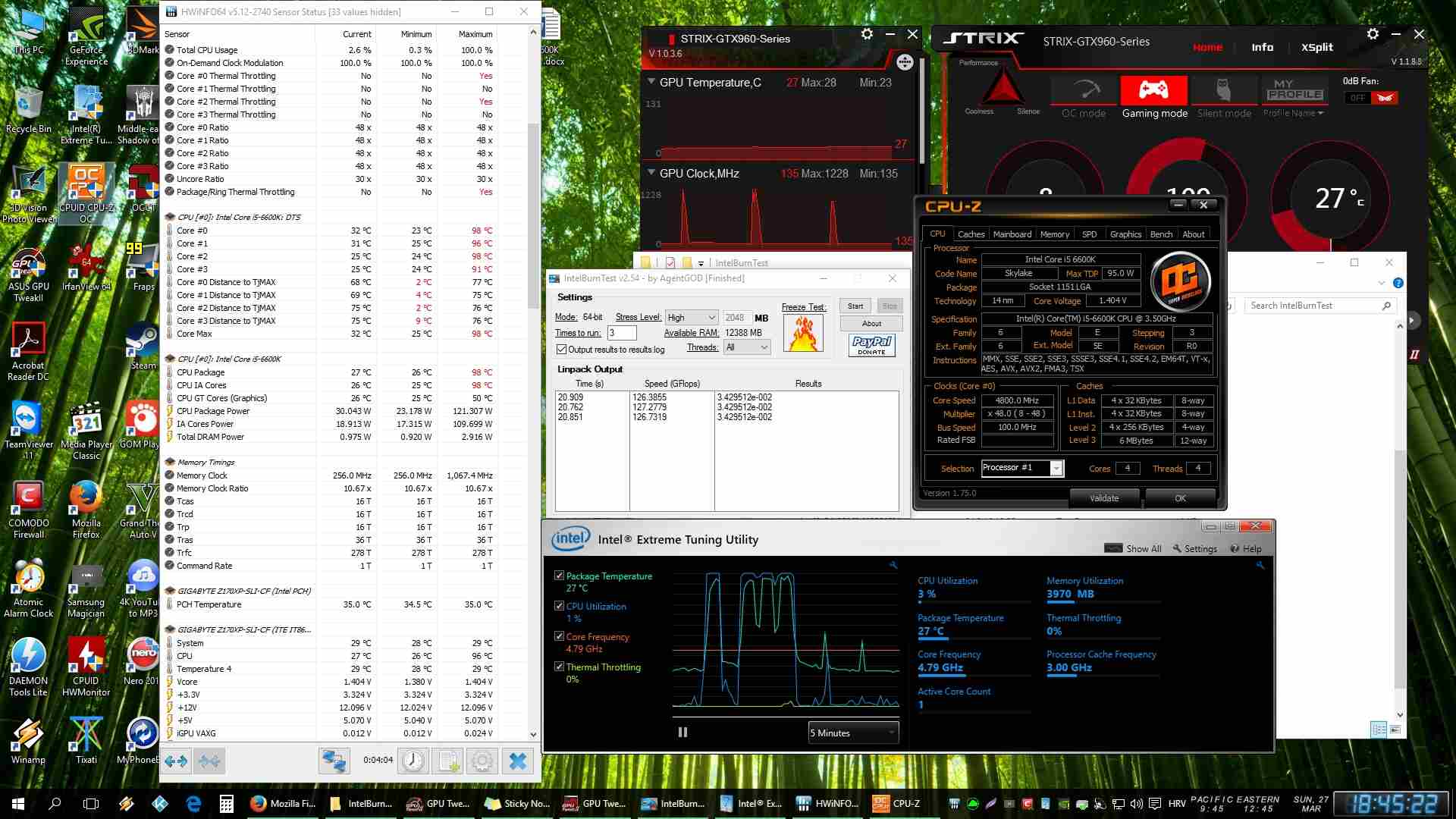 Stabilan mi je clock 4.5GHz na 1.3V, kasnije spuštam na 1.28V pa isprobavam hoće li držati isti clock. Definitivno bi mi trebalo nešto praktičnije od UEFI-ja za kontrolu brzine fanova jer bih htio nekad i spavati sa upaljenim kompom. ![]() |