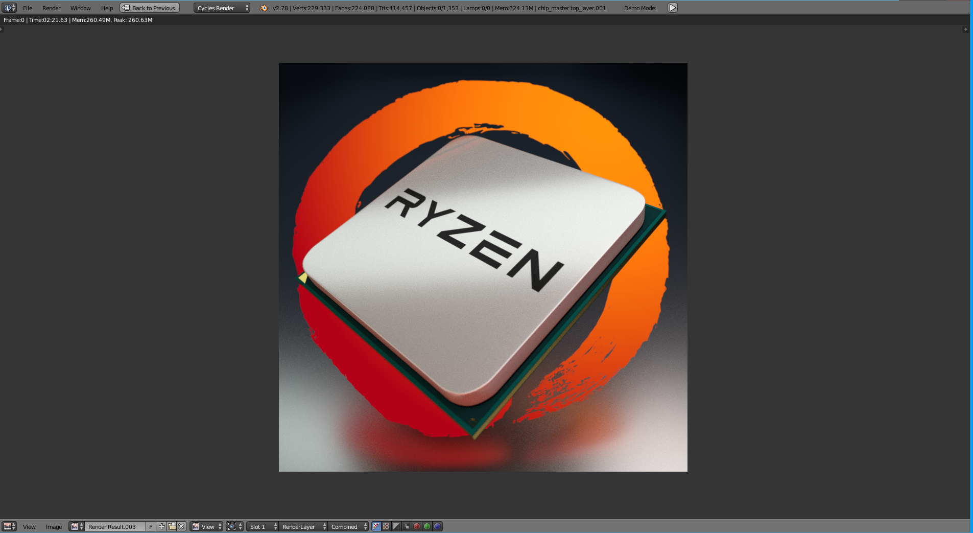 Rezultat u Blenderu 2.77a = 36.80 sekundi kod mene ALI samo na jednom CPU (blender ne kuzi processor groups pa nezna raditi sa vise od 64 threada, da zna onda bi bilo upola znaci 18 sec).