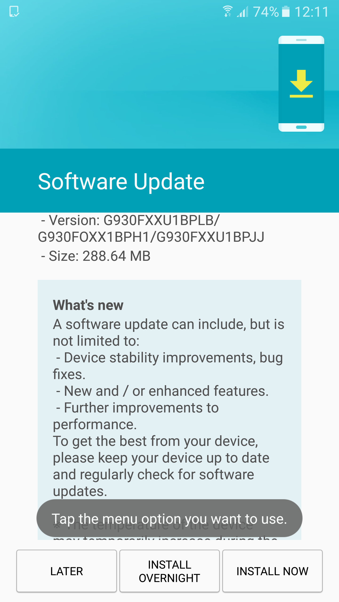 Kad se vec svi hvale s updateovima, evo i mene ...Citam Samsung temu i "slucajno" mi palo napamet provjeriti jel ima sto novog...Btw, za sve koji uskoro ocekuju 7.1.1, sumnjam da ce prije 2. miseca bikoz Google... Imho, prije ce ici 7.0 uskoro pa naknadno update na 7.1.1 Zadnje izmijenjeno od: Sn4k3. 17.11.2022. u 11:26. |