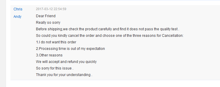 China Original Country 2017-02-06 11:11:05 【8】Order has been Cancelled. 2017-01-19 15:33:21 Waiting for pick up Otvorim Dispute i jos ce biti aktivan 3 dana a onda valjda AliExpress donosi presudu. U medjuvremenu se seller javio sa ovim pojasnjenjem. Citiraj:
