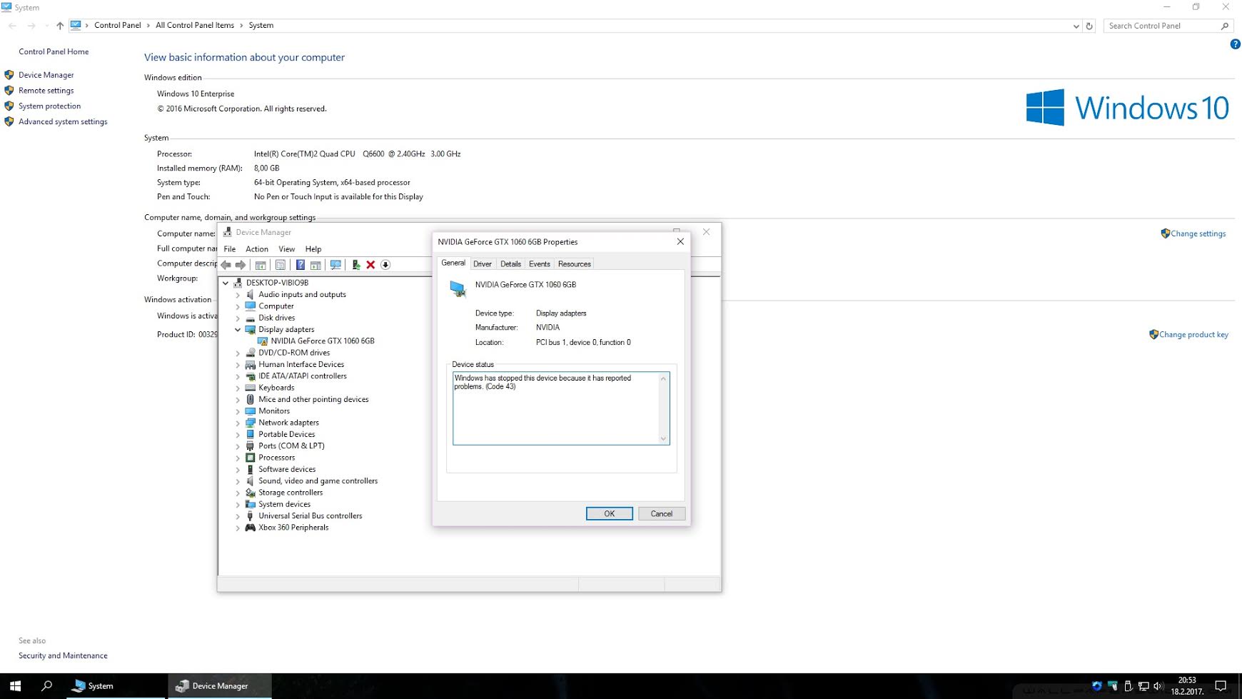 ja imam isto sa gtx1060...proba san i nvidia support (20-ak mejlova je izmjenjeno) ali ništa nije pomoglo osim starijih drivera koji rade najnormalnije dok s novima baca code 43. Zadnji driver koji mi radi je 376.53 - bilo koji noviji i odma code 43... |