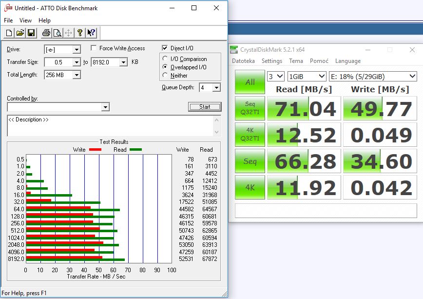 ADATA S102 Pro 32 GB ..... R: 100 MB/s W: 50 MB/s 120 kn ![]() ![]() KINGSTON DTR30G2 32 GB , 140 kn , R: 120 MB/s W: 45 MB/s ![]() Sandisk Extreme USB 3.0 64GB 295 kn ... SSD na USB stiku i jos uvjek trenutni best buy za performanse koje nudi ![]() ![]() sam sek da dovršim ...
