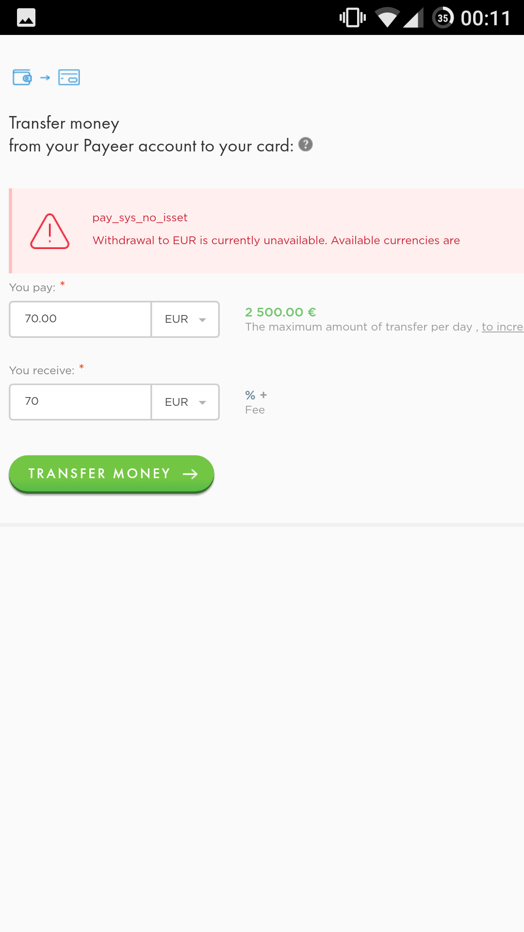 Payeer je katastrofa, izbjegnite ga u širokom luku. Prebacio eure na account i sad mi kazu probavaj uskoro. Probavaj, mi ne znamo kada, fala na strpljenju, fala na eurima, fala na izradi kartice.... Lova u zraku stoji a oni mutavi se prave. |