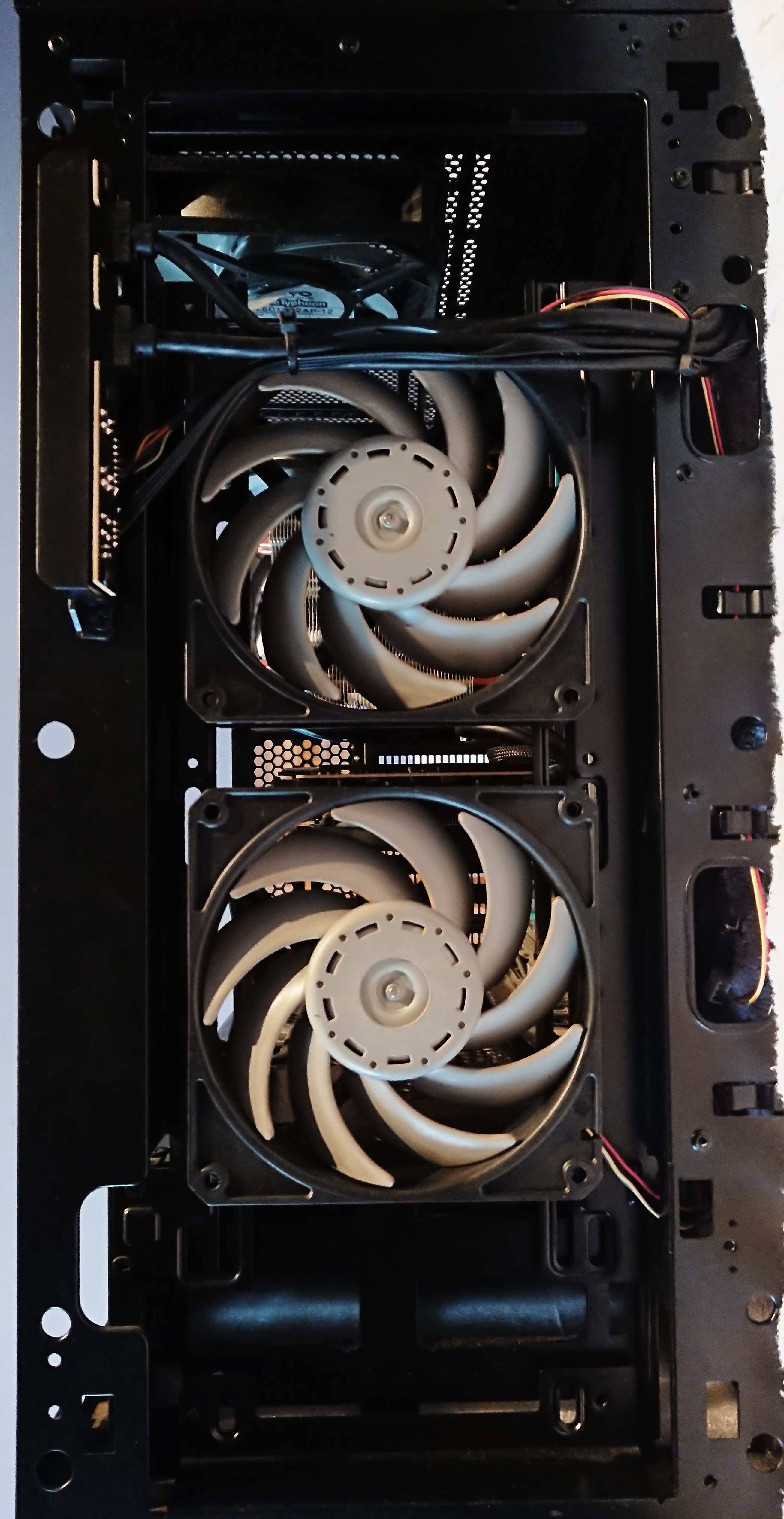 ![]() Par brzinskih fotki mog stroja u Enthoo Pro M. Ima li kakva preporuka za bolji raspored ventilatora, trebam ionako presložiti kablove od ventova jer se vide posvuda, pa da pitam usput za savjet. Naprijed su 2x120mm GentleTyphoon 1800rpm PWM kao usis, gornji su isto Typhoon ali 800rpm fiksni, desni je usis, lijevi ispuh. Straga je Arctic 140mm 1200RPM PWM. Prednji GT i stražnji Arctic rade jedino dok igram igre da hlade grafu, budu na nekih 70%, u idle se gase i oni i CPU fan, ostaju raditi samo gornji. Ne znam bi li bilo bolje da gornje stavim oba kao usis i pomaknem ih skroz desno, ili kao ispuh i maknem ih lijevo. Jer čini mi se da možda u ovakvoj konfiguraciji gornji usis remeti strujanje prednjih dva venta. Ili npr. okrenuti CPU hladnjak prema gornjem ispuhu? Možda bi onda brže istjerao vrući zrak od grafe van? U rezervi imam i jedan Phanteksov 140mm, možda da njega negdje ukomponiram, ali ovi GT su mi toliko dobri da mi ih je žao čupat van. Do 50% su praktički nečujni, više čujem HDD kad se zavrti (i to je jedan problem koji ne znam kako bih riješio). Ono što pokušavam napraviti je da u full load ne moram dizati ventilatore kučišta iznad 50%, a sada moram jer se počne grafa gušit i prelazit 70C (sa ventom na 50%) što mi se baš ne dopada. Ne bih baš htio ni stvoriti previše vakuuma, jer onda prašina ulazi sa svih strana. Za fan control koristim AI Suite, koji mi iz nekog razloga ne dozvoljava kontrolu prednjih i stražnjeg venta zasebno nego ih trpa u istu rubriku, iako su spojeni u odvojene utore, Sys Fan 1 i Sys Fan 2. Mislim da se zbog toga i javlja problem, što na 70% usis radi na nekih 2x1300RPM plus gornji 800rpm, a ispuh tada bude straga 900rpm i gore 800rpm, ne izbacujem dovoljno brzo vrući zrak van tokom full load. |