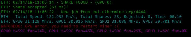 Ekipa, jel netko zna zašto mi claymore 11.0 baca ovu grešku: WATCHDOG: GPU error, you need to restart miner U HWinfo nema errora ni na jednom GPU-u, bios je flashan sa One click opcijom u Polarisu, UberMix 3.2 i 3.1 strapovima(dvije kartice Asus i dvije Hynix+Samsung), nikad nisam stavljao DAGpatcher, koristim OverdriveNtoool, postavke u prilogu, tnx! |