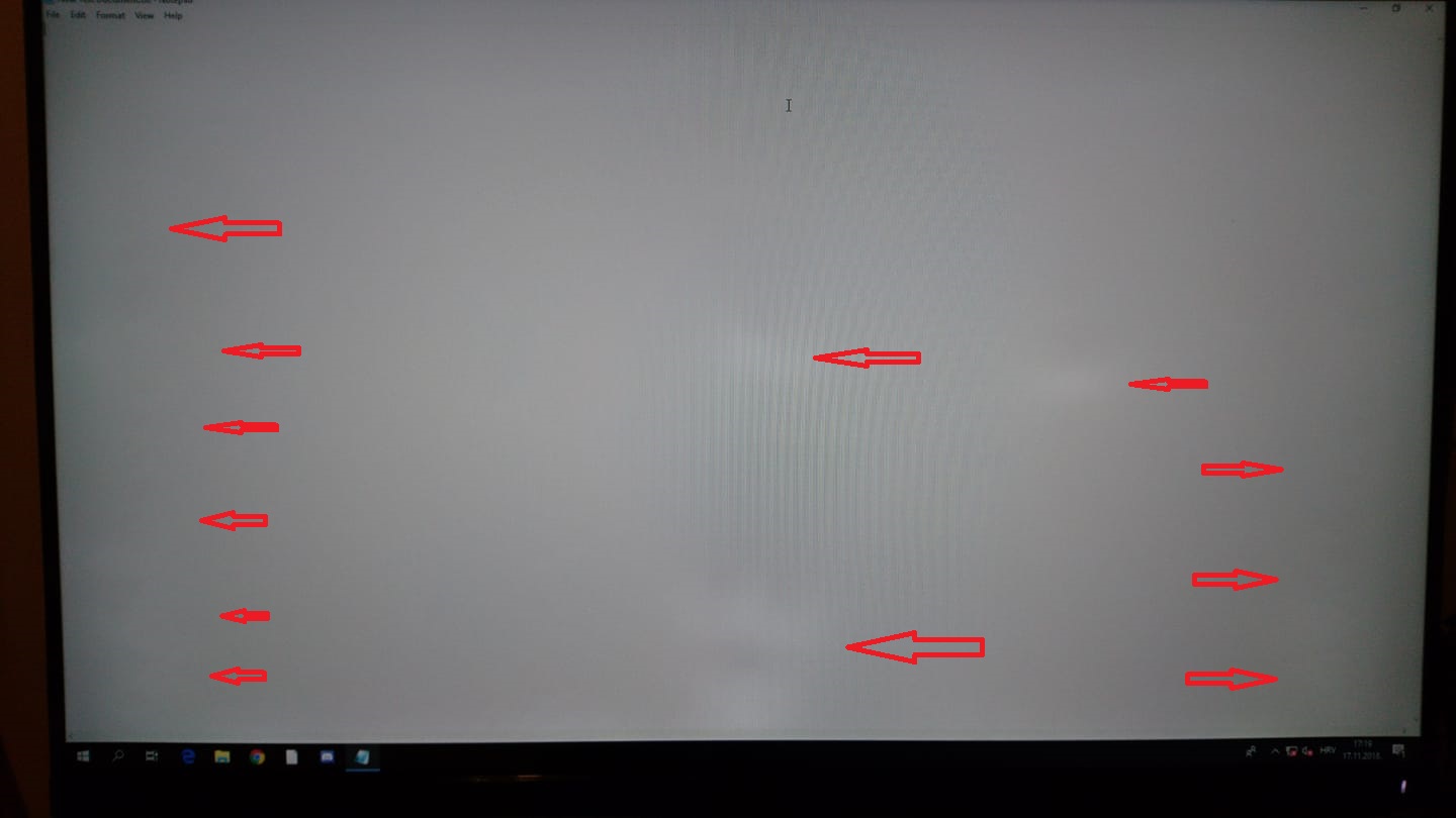 Evo uslikao sam monitor . Loša je slika jer slikao sam sa mobitelom , ali vide se fleke , tj. izbijanje svjetla i to prilično po cijelom displayu . Puno gore izgleda u živo . |