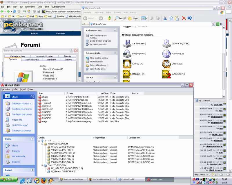 imam SP2 , i kad hocu npr, od nero Image drive, ili Alcohol 120% ili Daemon tools, sve mi blokira npr , alcohol radi sve dok ne krene pokretanje i namjestanje virtualnog drive-a , i poslije toga uspori sav sistem na 086 hehe pokusao sam gasenje firewalla, al nista zna li ko lijek za ovo, stvarno mi je potreban virtualni drive