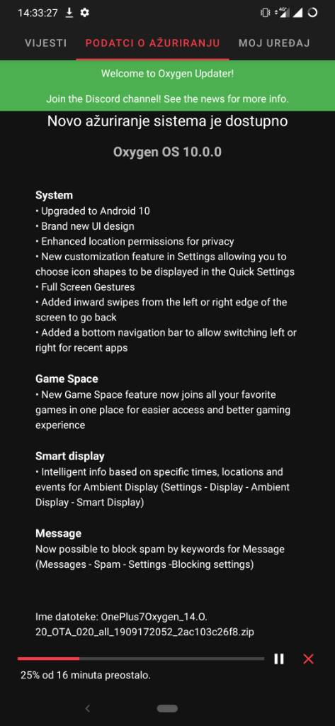 jel mozes pogledati koja je tocno verzija (ili jos bolje screenshot). Cura ima čajniz verziju telefona ( oneplus 7 GM1900 ) pa me strah da ne povuce neki krivi apdejt. Koju ti verziju telefona prepoznaje oxy update? Curi piše oneplus 7 a u opcijama vidim da nudi nekoliko verzija sedmice (eu, čajniz..).