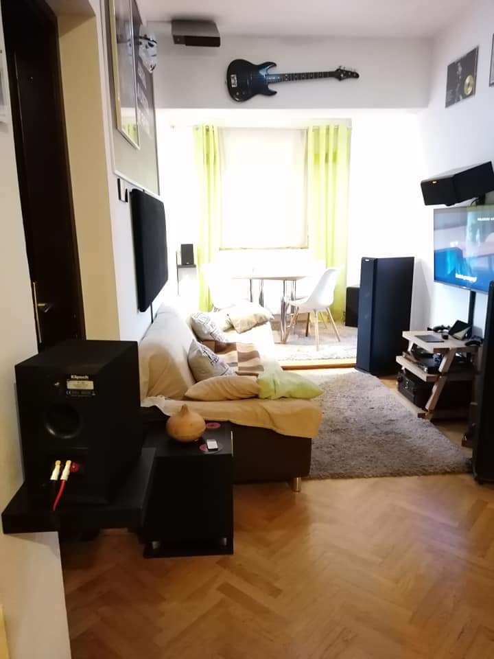 Jedna skala više na racku je puno bolja ideja nego 2 kutije cipela. Definitivno probaj tu lokaciju za centar jer vjerujem da ce ti više odgovarat. Znam da svako ima neku svoju ideju kad je riječ o centralnom zvučniku ...iako ne znam zašto jer se gajdlajnsi i preporuke za miksanje i produkciju svode skoro na isto te su poprilično jasni. P&E Wing Recommendations For Surround Sound Production Dolby Surround Mixing Manual 01 / Issue 1 Dolby 5.1-Channel Music Production Guidelines / Issue 2 Dolby Atmos Home Entertainment Studio Certification Guide Sažeto , centar ti treba a mjesto toliko visoko na zidu ostavi radije za križ ili grb ljepe naše. Što se tiče ostalog , situacija je daleko od ideale ali bar se nisi išao igrat biljara za zvučnim valovima kao što to preferira večina kad je riječ o atmos integraciji. Pitao sam za stražnji zvučnik jer mi se činilo kao da kabel izlazi iz same police što je riješenje koje nisam nigdje vidio. A nisam vidio ni taj rack. Tvoja ideja ili ...? Uljeno? Izgleda zanimljivo. Zadnje , još jedan xtz sub bi tu bio minimum. Pioniru je mjesto na njuškalu.