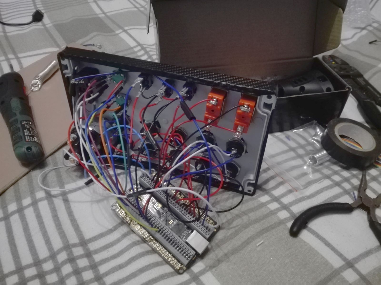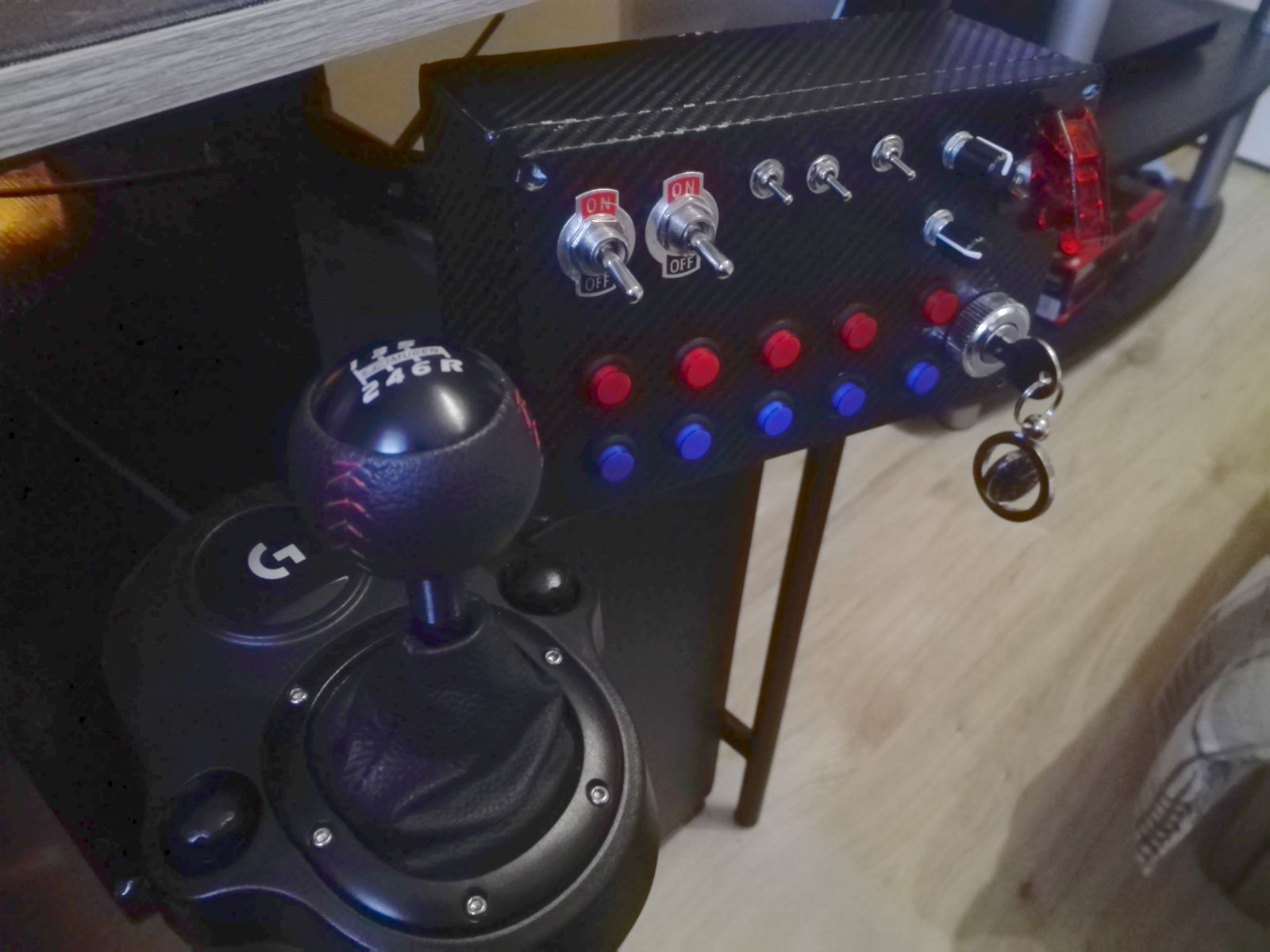 Ovo sam si napravio zadnjih mjeseci. Prvo nosač koji se uvlači pod stol a onda napravio button box. Prekidači s Alija i ploča od Lea Bodnara, sve šljaka super. Kupio sam od 3drap i onaj mod za mjenjač (Mod Cambio 3.5) ali prejak mi je otpor i sad stoji u ladici. Prije 10 godina kad sam imao G25 sam to napravio pa vjerojatno u budućnosti opet napravim. |