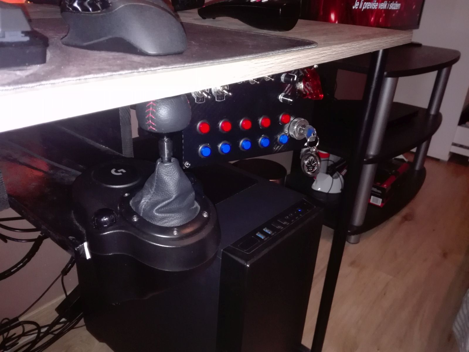 Ovo sam si napravio zadnjih mjeseci. Prvo nosač koji se uvlači pod stol a onda napravio button box. Prekidači s Alija i ploča od Lea Bodnara, sve šljaka super. Kupio sam od 3drap i onaj mod za mjenjač (Mod Cambio 3.5) ali prejak mi je otpor i sad stoji u ladici. Prije 10 godina kad sam imao G25 sam to napravio pa vjerojatno u budućnosti opet napravim. |