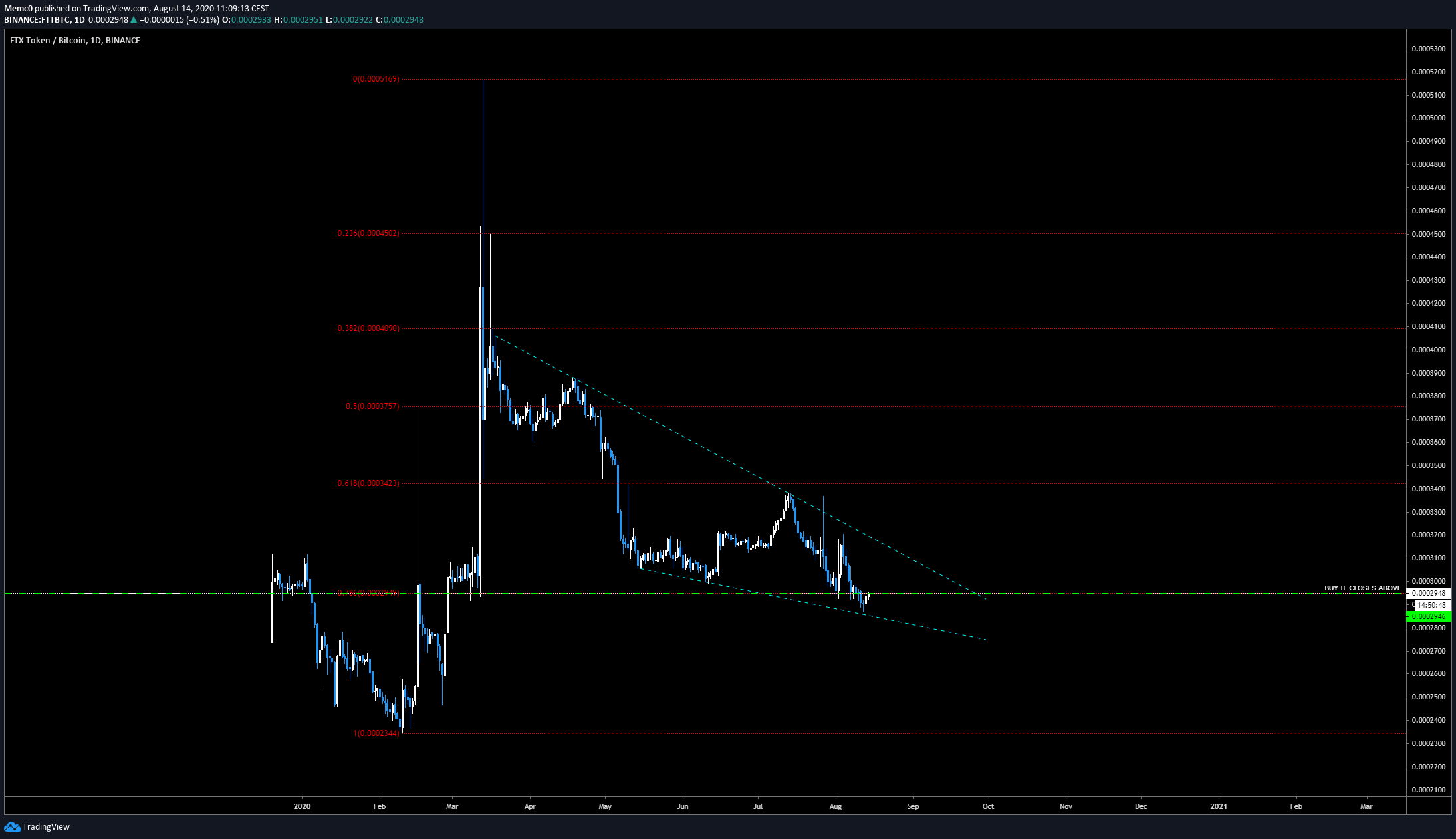 FTT mrdnuo napokon preko linije. Na kraju uletio ispod nje (2857 sat) zbog čistog bullish divergenca na daily chartu. SL break even i let it fly. Za sad respektira gornju granicu trenda. Ako ju probije, mogućih 15 do 30% profita. Target 1 i 2, mooožda i 3 za 60%. ![]() |